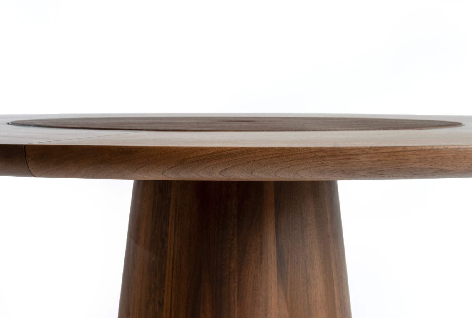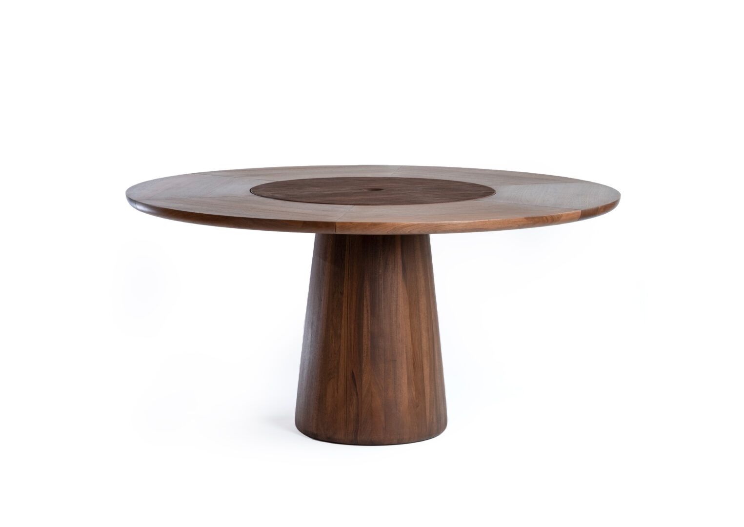 Koba est essentiellement une gravure transformée en une table intemporelle. À première vue, il s’agit d’un meuble d’une simplicité trompeuse aux belles proportions caractéristiques du langage de conception de Massaud. Cependant, un regard plus attentif révèle des détails complexes qui font de cette table autant un objet fonctionnel qu’une vitrine de l’extraordinaire savoir-faire artisanal et des matériaux naturels de première qualité. . La base conique de la table est sculptée dans de l’érable massif et se termine par un fond doux et arrondi. . La partie extérieure du plateau de la table est en granit du Zimbabwe de 4 cm d’épaisseur, avec une finition brûlée et texturée. La partie centrale de la table, en bois massif, est intégrée à la pierre. Cette partie sculptée à la main n’est pas seulement un point d’orgue visuel, c’est aussi un élément de plateau tournant conçu pour faciliter le partage des aliments autour de la table. La partie en bois est facilement amovible pour permettre un nettoyage en dessous si nécessaire. La finition texturée de la pierre et le plateau rotatif sculpté à la main se marient remarquablement bien, ajoutant une touche de chaleur et de tactilité à la pièce. La table est disponible en 140 cm (6 places) et 160 cm de diamètre (8 places).
